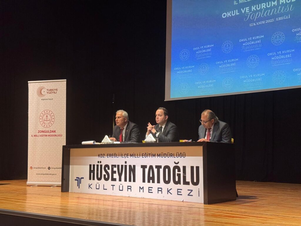 Kdz. Ereğli’de, 12 Kasım 2025 tarihinde Hüseyin Tatoğlu Kültür Merkezi’nde Okul ve Kurum Müdürleri Toplantısı gerçekleştirildi.