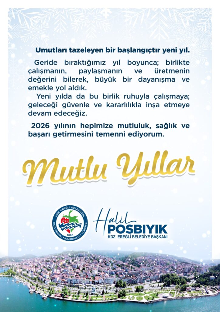 aldık.Yeni yılda da bu birlik ruhuyla çalışmaya; geleceği güvenle ve kararlılıkla inşa etmeye devam edeceğiz.2026 yılının hepimize mutluluk, sağlık ve başarı getirmesini temenni ediyorum.Mutlu Yıllar!”