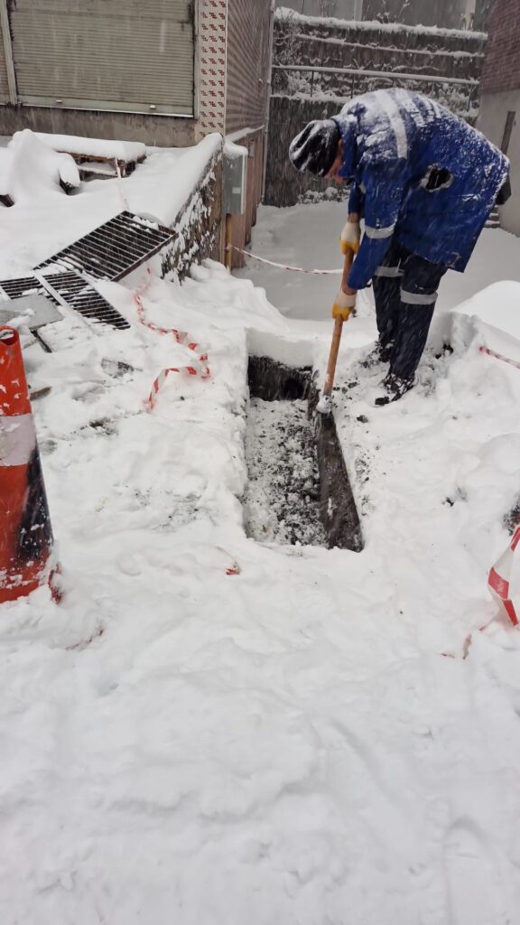 ediyor, kaldırımlar ve yaya geçitleri yayalar için güvenli hale getiriliyor. İtfaiye tehlike arz eden kar ve buz sarkıtlarını temizliyor, çarşı merkezi kar kütlesinden arındırılıyor.